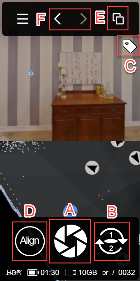 You can use this button to navigate between all the scans you have captured. This makes it easy to review and ensure all necessary scans have been taken or to return to a specific scan for review or adjustments.